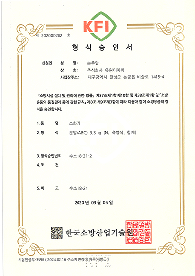 수소 18-21-7수동식소화기 ABC급 분말 3.3kg